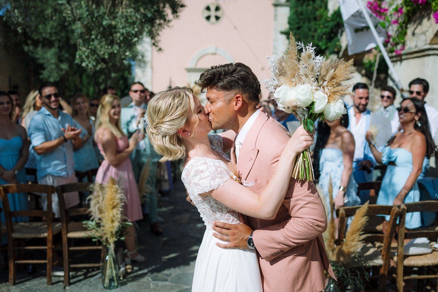 Larissa and Joy worked with a local wedding planner who transformed their vision into reality. For couples planning a destination wedding in Crete from abroad, this expertise makes all the difference. A local planner handles the logistics you can’t manage from thousands of miles away. They coordinate with vendors in Greek, understand cultural nuances, and know which florists deliver on time and which caterers truly excel. They navigate permits, timeline creation, and day-of execution so you can actually be present during your celebration. The planner’s knowledge also extends to blending Cretan traditions with your personal style. Maybe you want traditional Greek musicians during dinner but modern dancing later. Perhaps you love the idea of offering guests raki (Cretan spirit) but need guidance on when and how. A local expert bridges these cultural elements seamlessly.